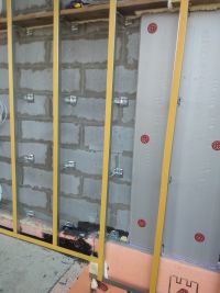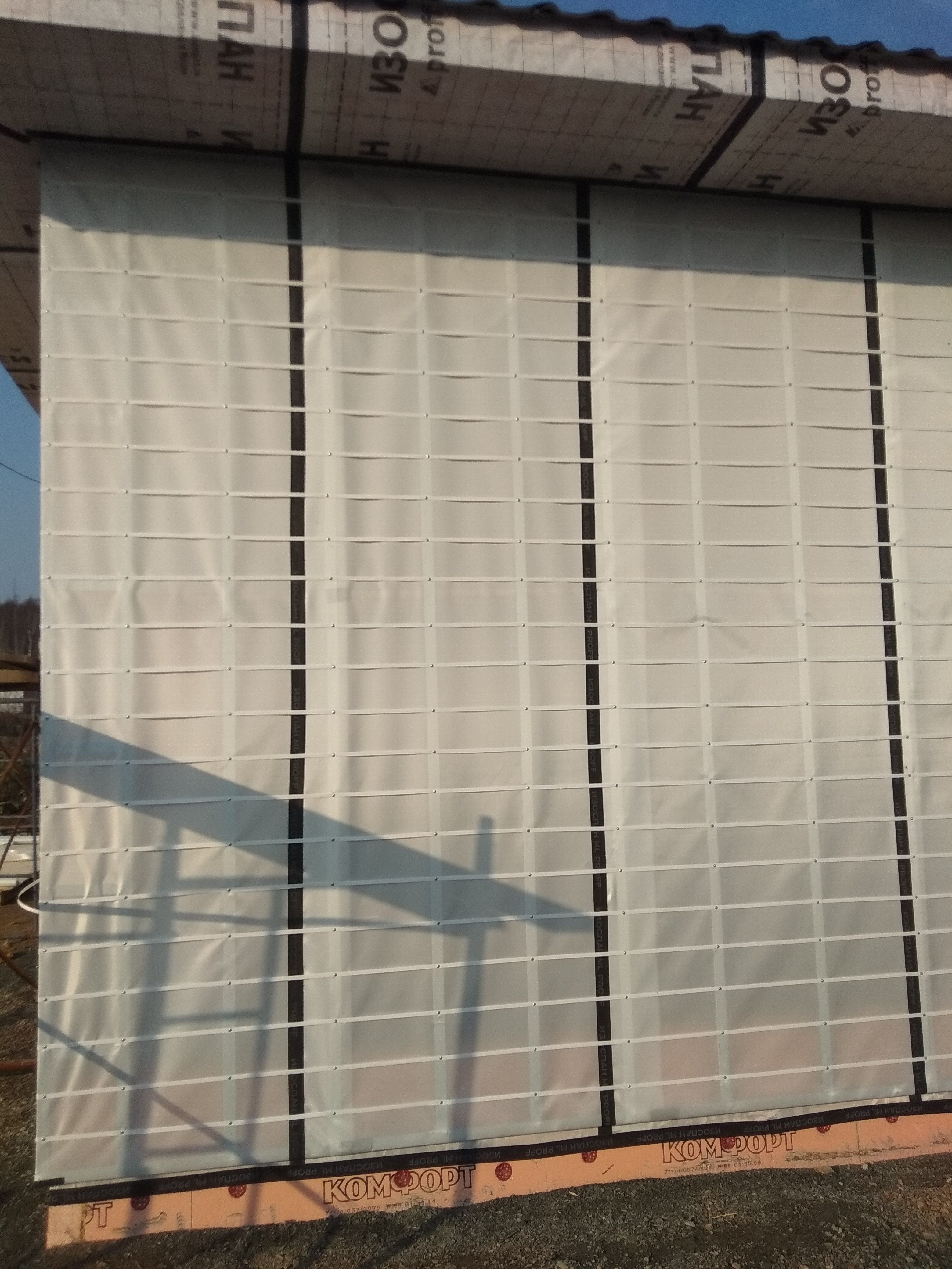 Теплоизоляция фасада (сухой способ) в полости под мембрану (парапроницаемая,НГ), дома из пеноблока с ж/б силовым каркасом стен, без облицовки (отсроченный период более 6 месяцев). Имеются уникальные ньюансы технологии монтажа!